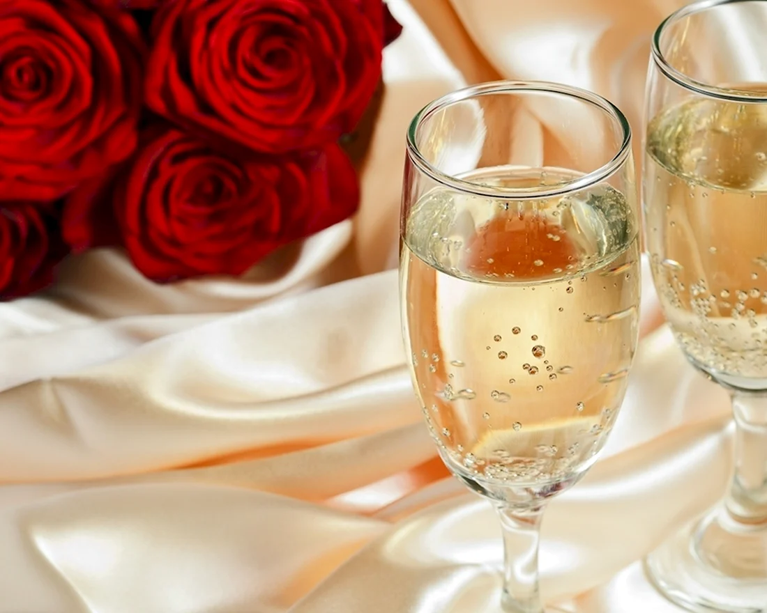 Шампанское бокалы цветы.