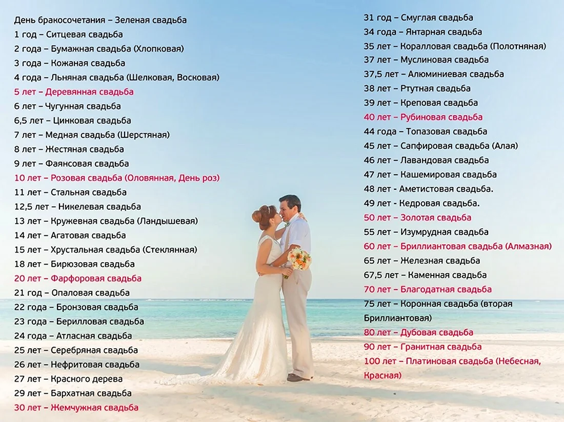 Свадьба по годам как называется таблица.