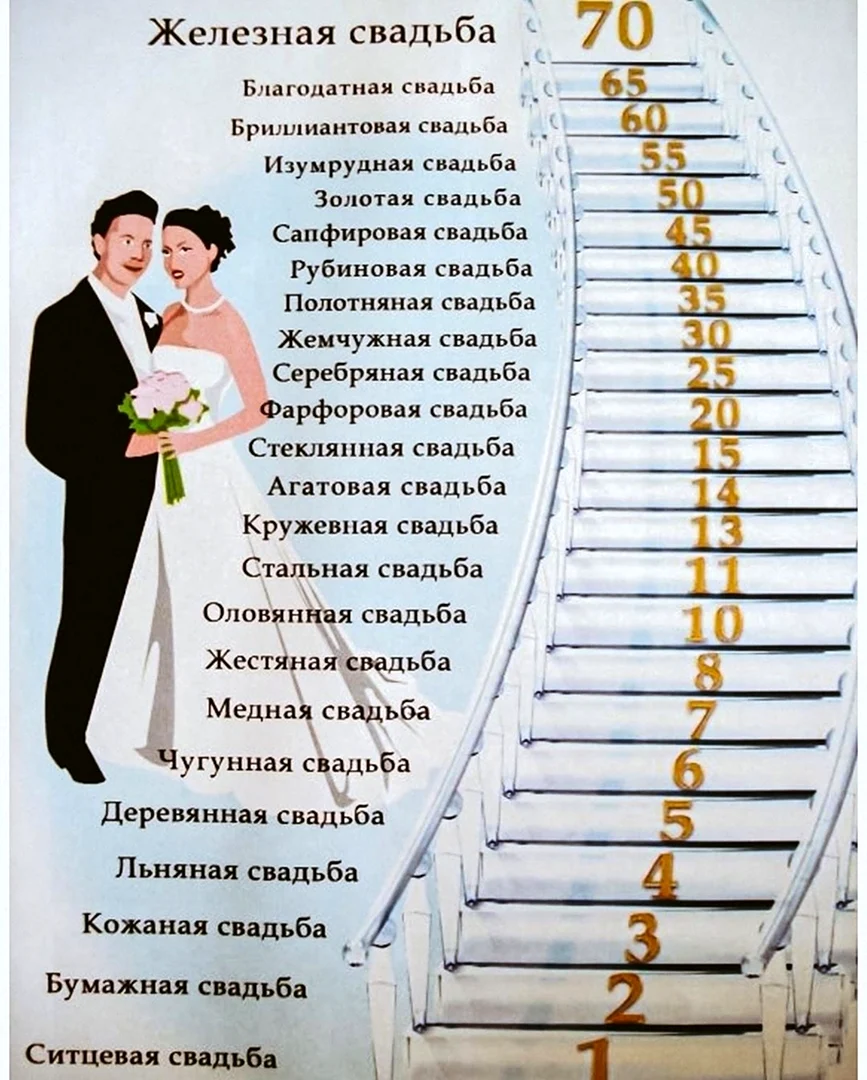 Годовщины свадьбы по годам от 1 до 100.