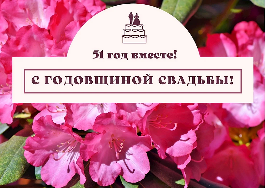 Празднуйте радостный юбилей — 51 годовщину свадьбы! Отправьте вашим близким волшебную открытку, чтобы подарить им волнующие моменты счастья и любви, прожитые вместе.