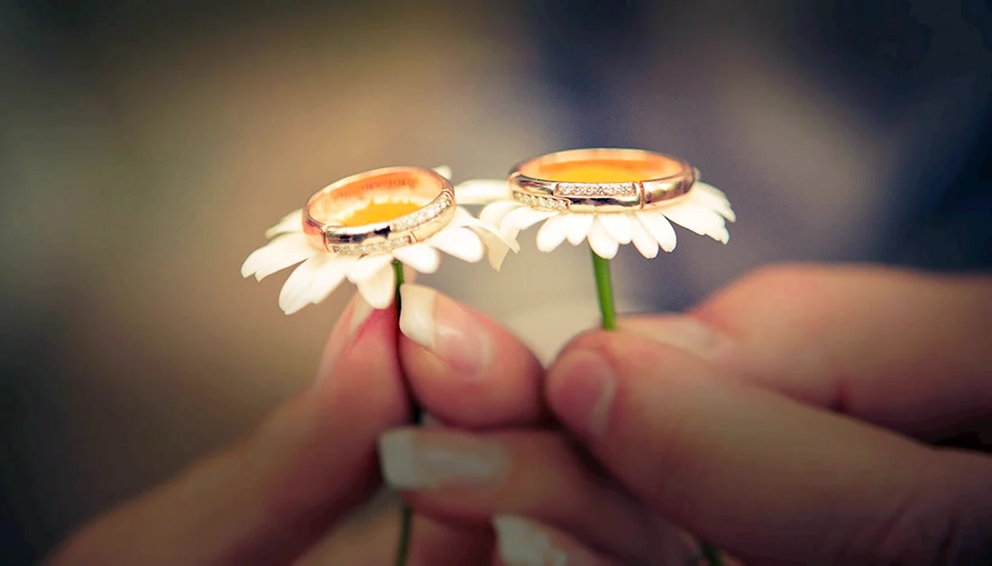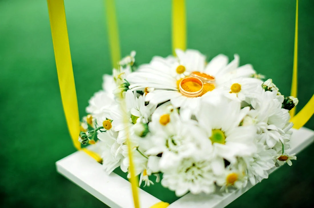 Ромашки и обручальные кольца.