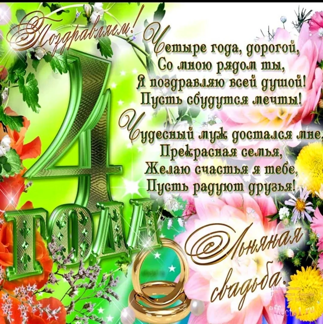 Годовщина свадьбы 4 года льняная свадьба открытки поздравления.
