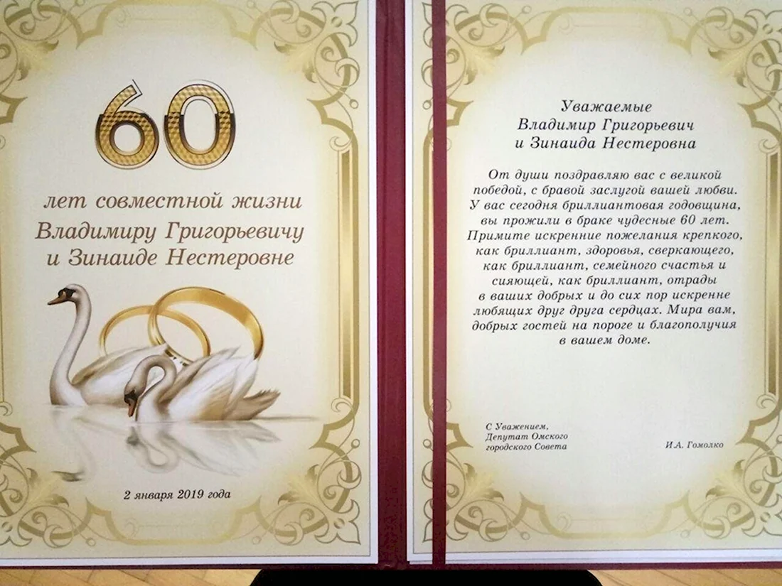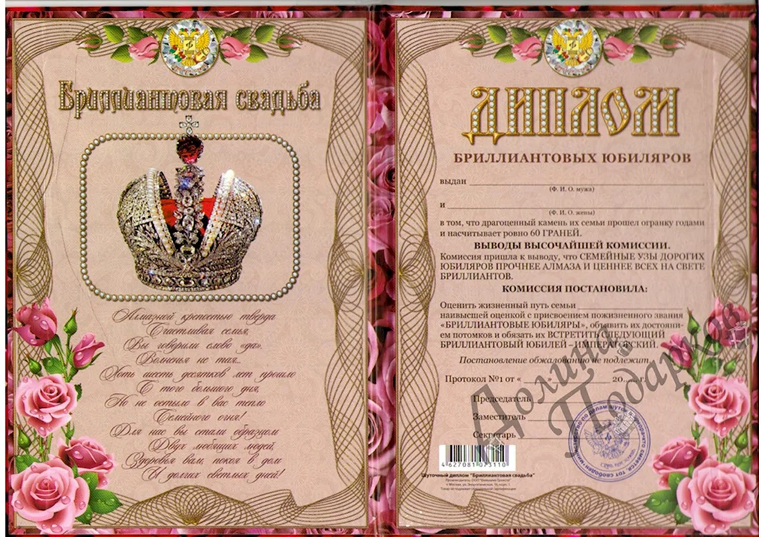 65-летний юбилей свадьбы — важная и радостная дата в жизни супружеской пары, символизирующая прочность и долговечность их союза.