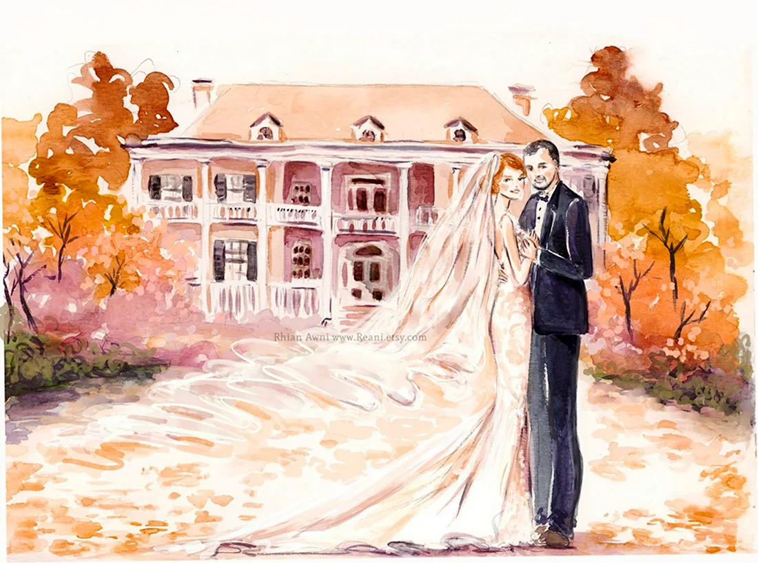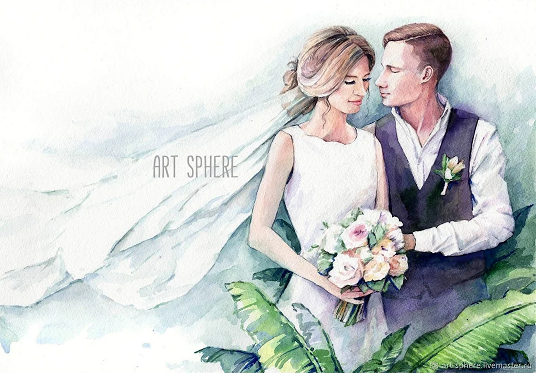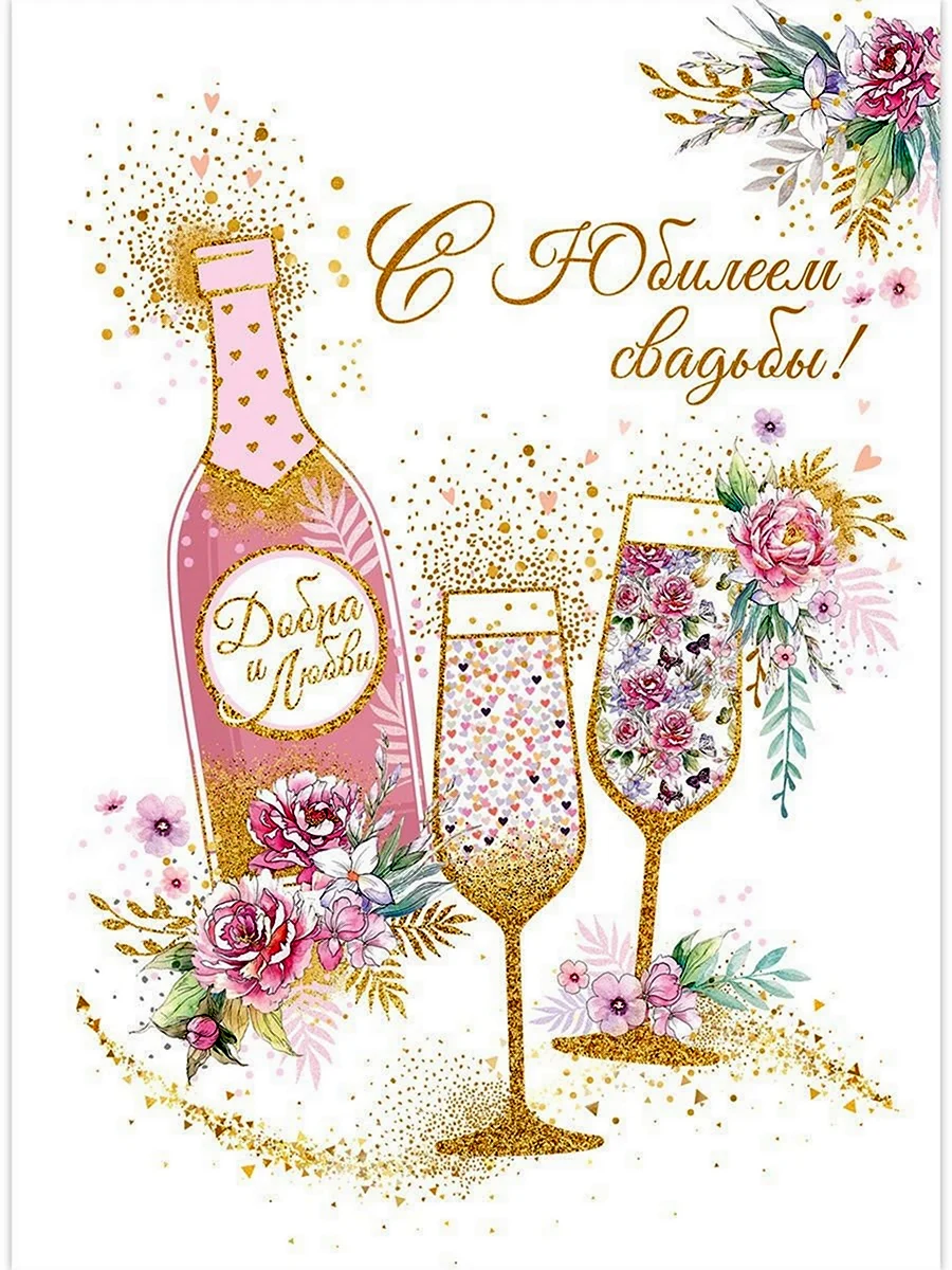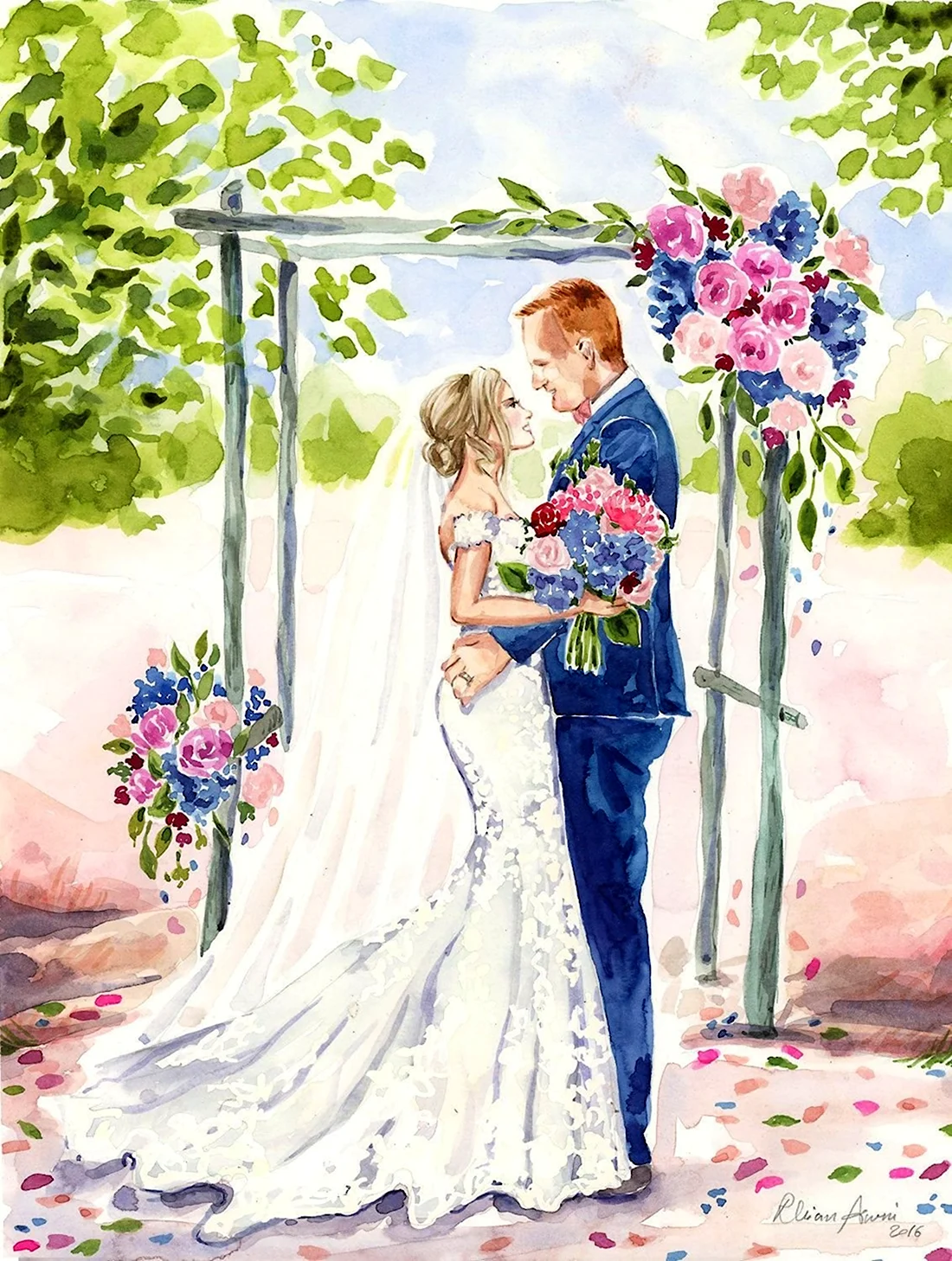 Праздничная годовщина свадьбы в акварельном стиле в виде открытки.