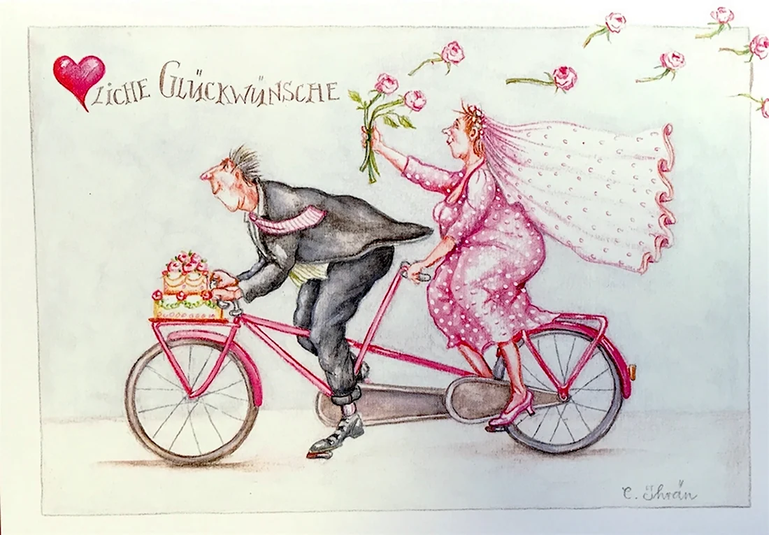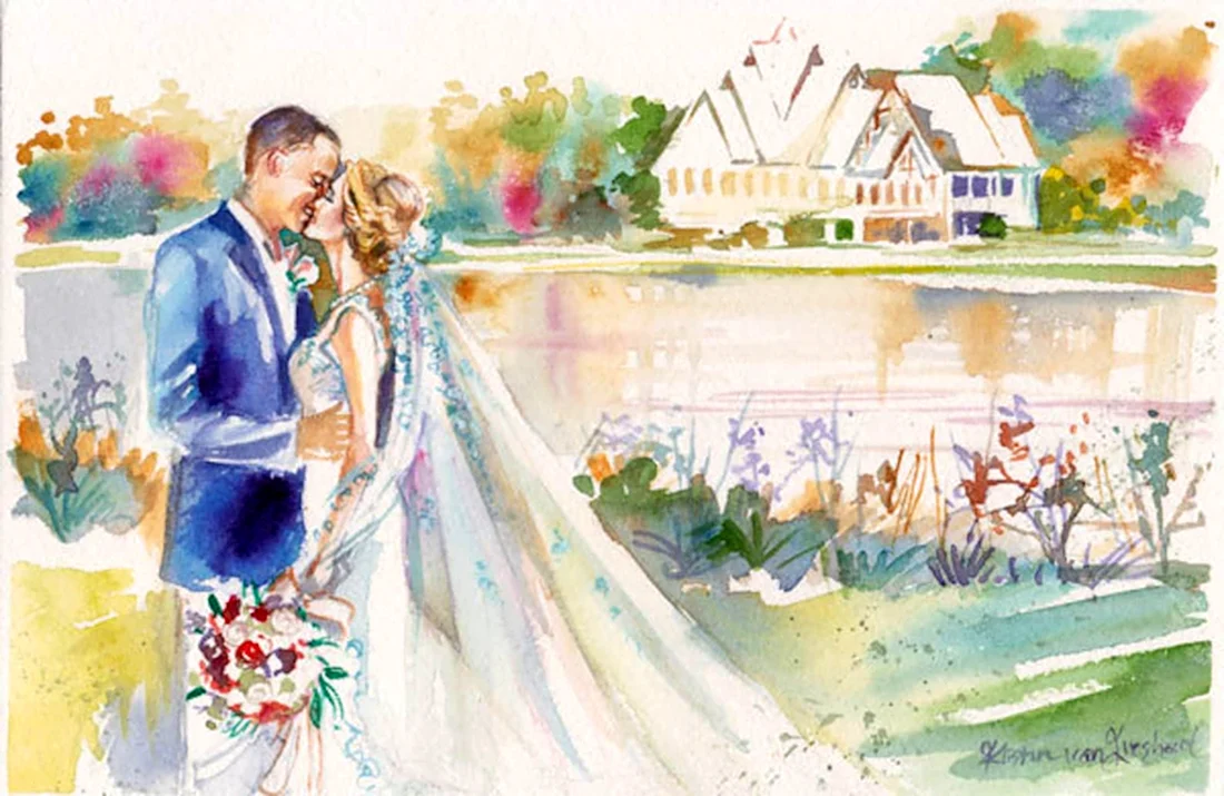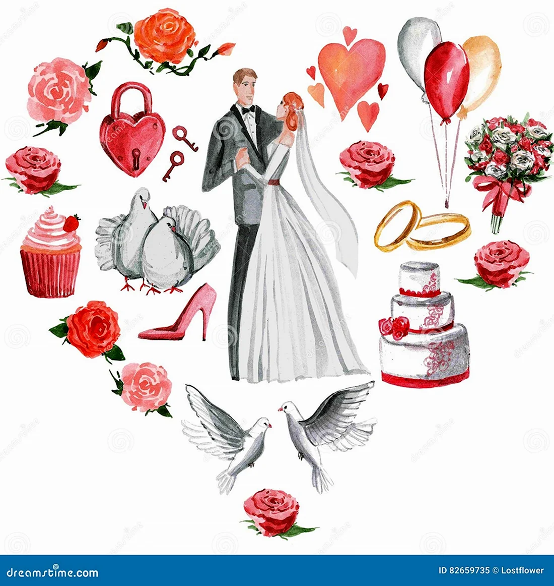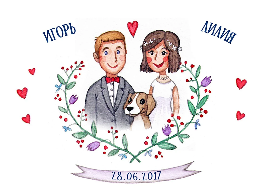 Праздничная годовщина свадьбы в акварельном стиле в виде открытки.