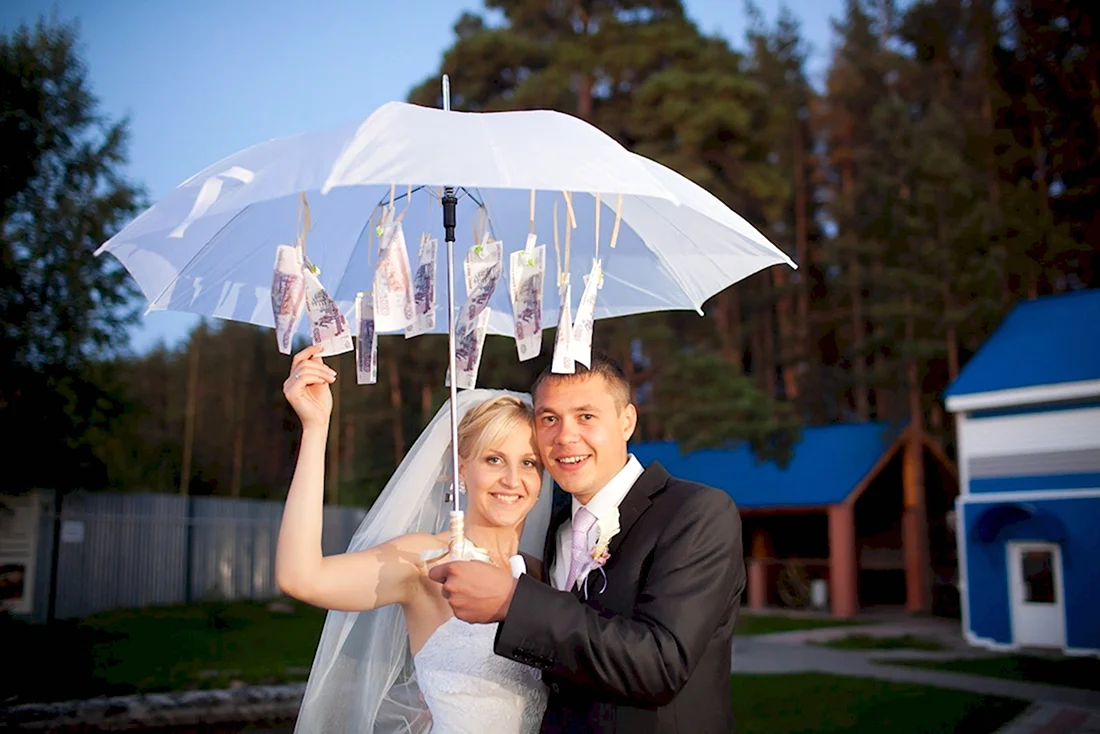 Денежный зонт на свадьбу.