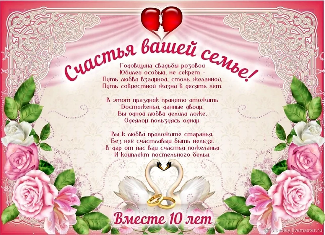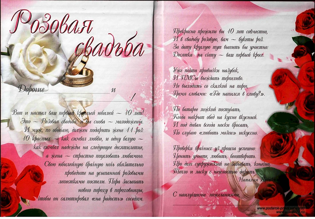 Поздравление с розовой свадьбой 10 лет.