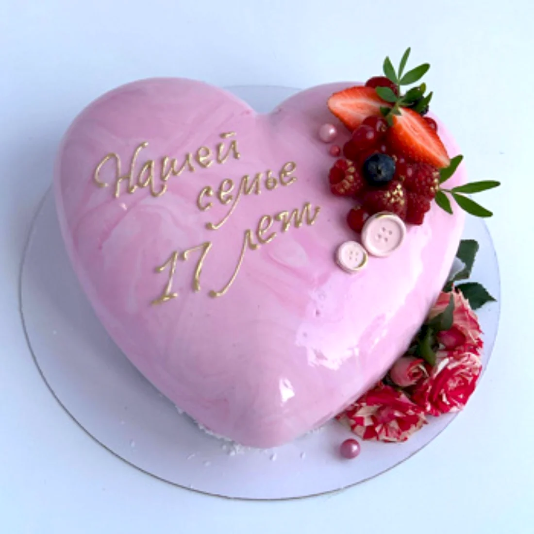 Торт на розовую свадьбу 17 лет.