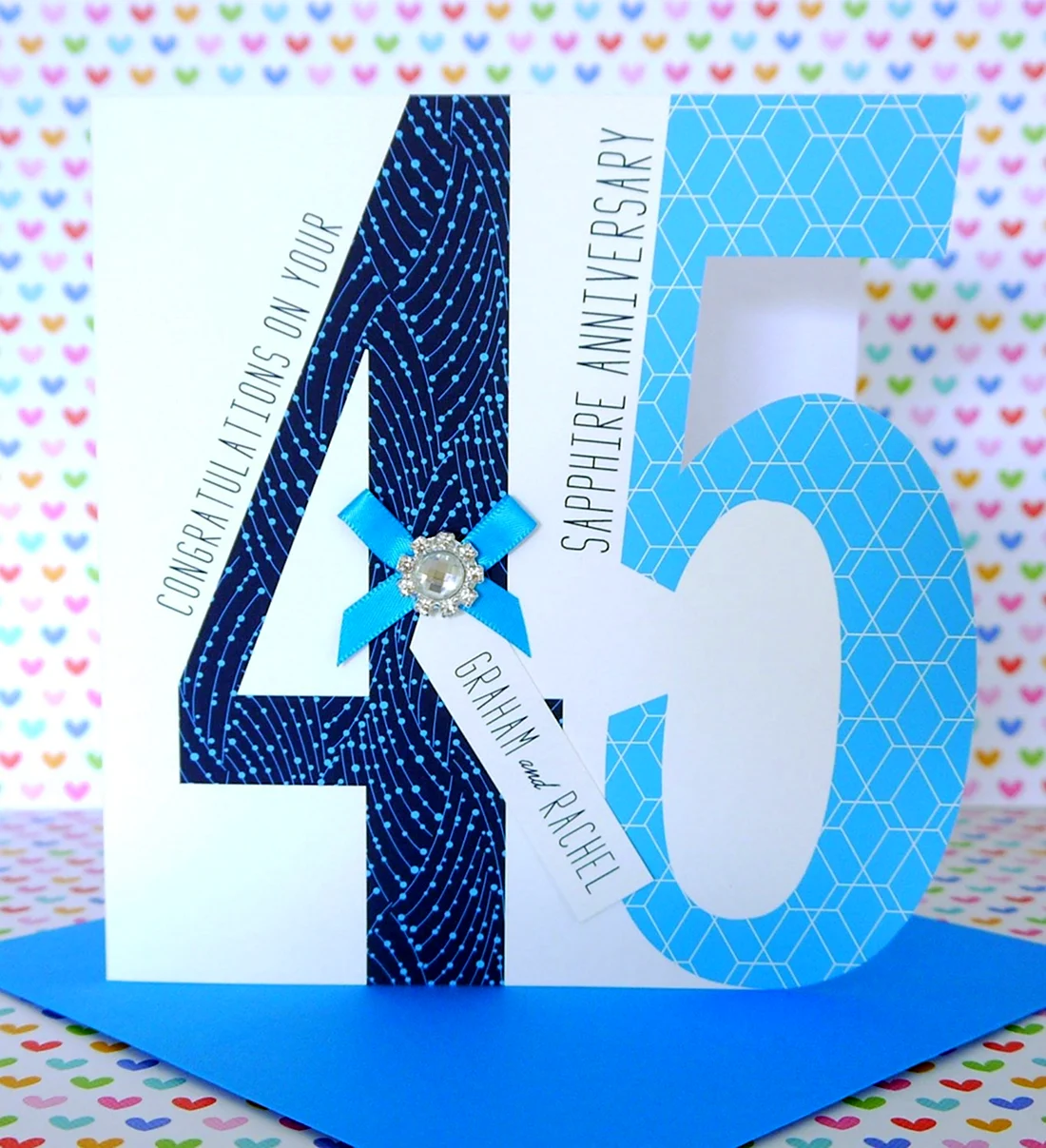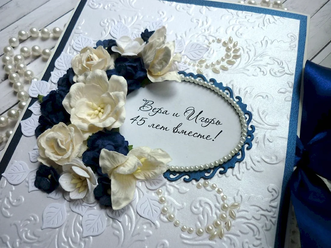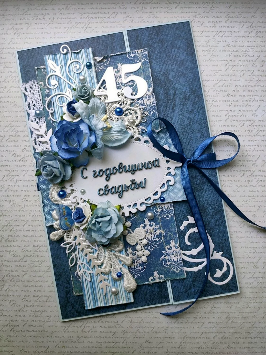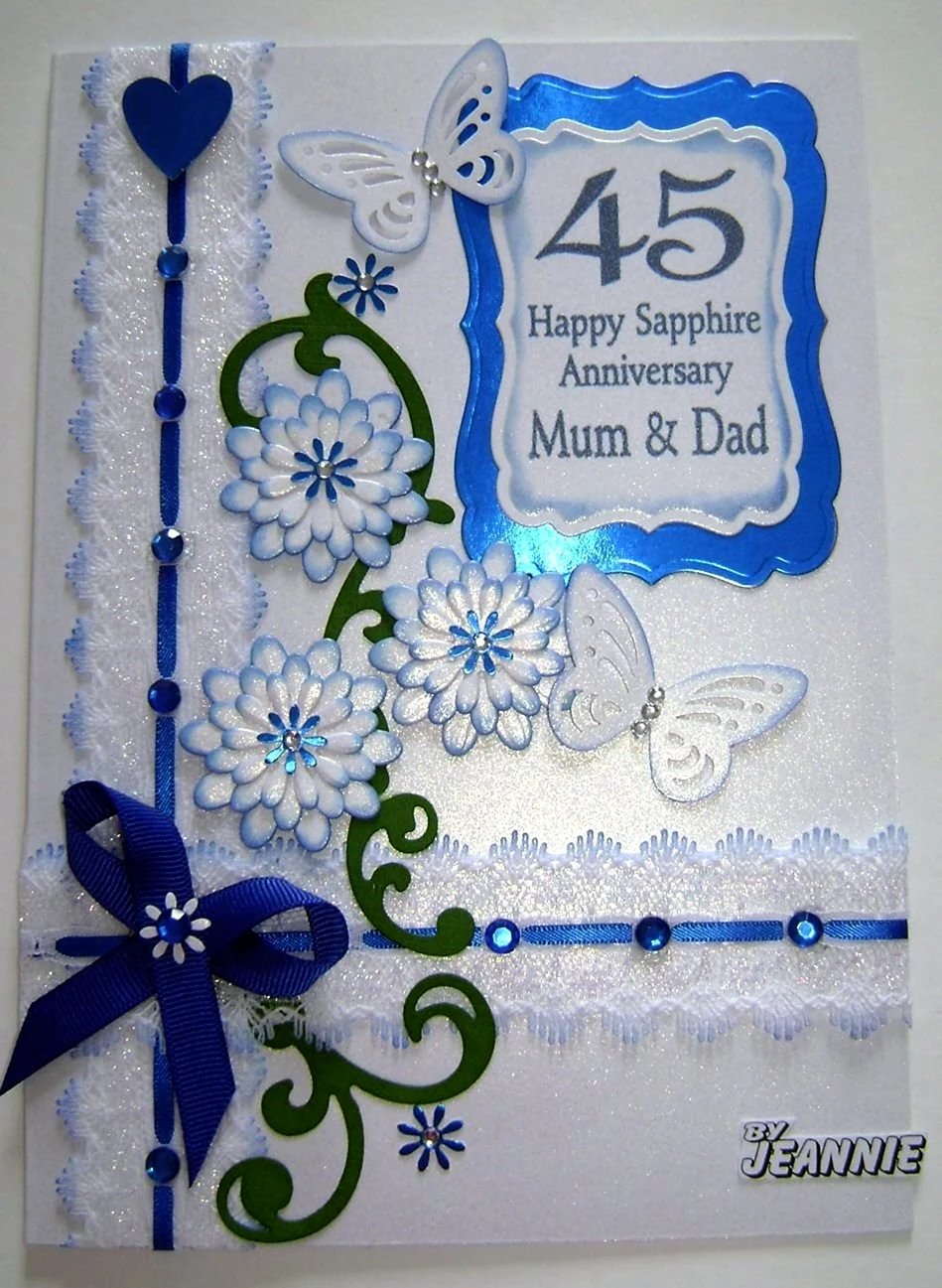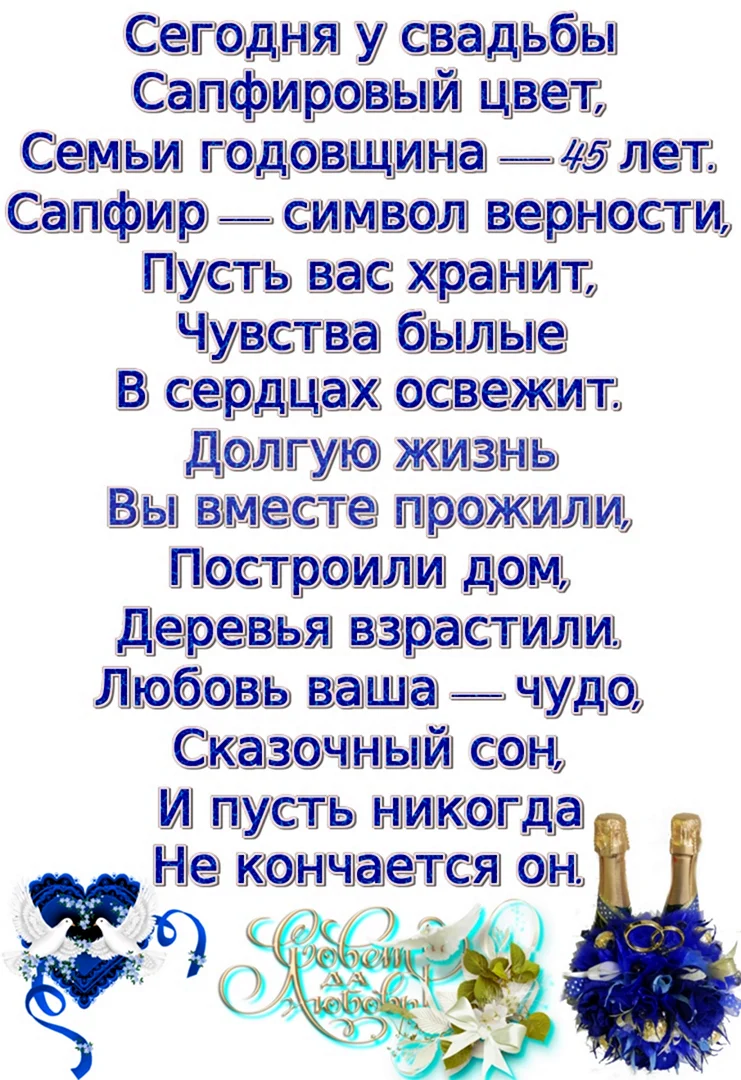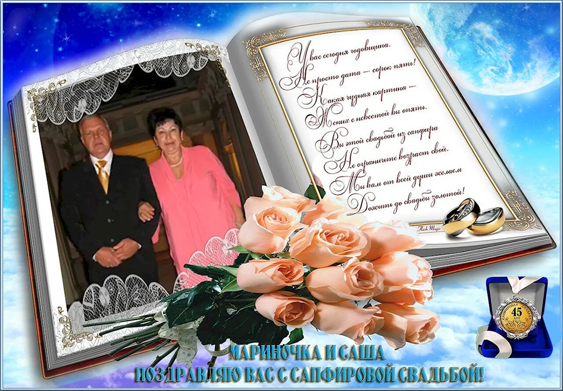 Открытки для сапфировой свадьбы — идеальное решение для поздравления влюбленных с 45-летием их счастливой жизни вместе.