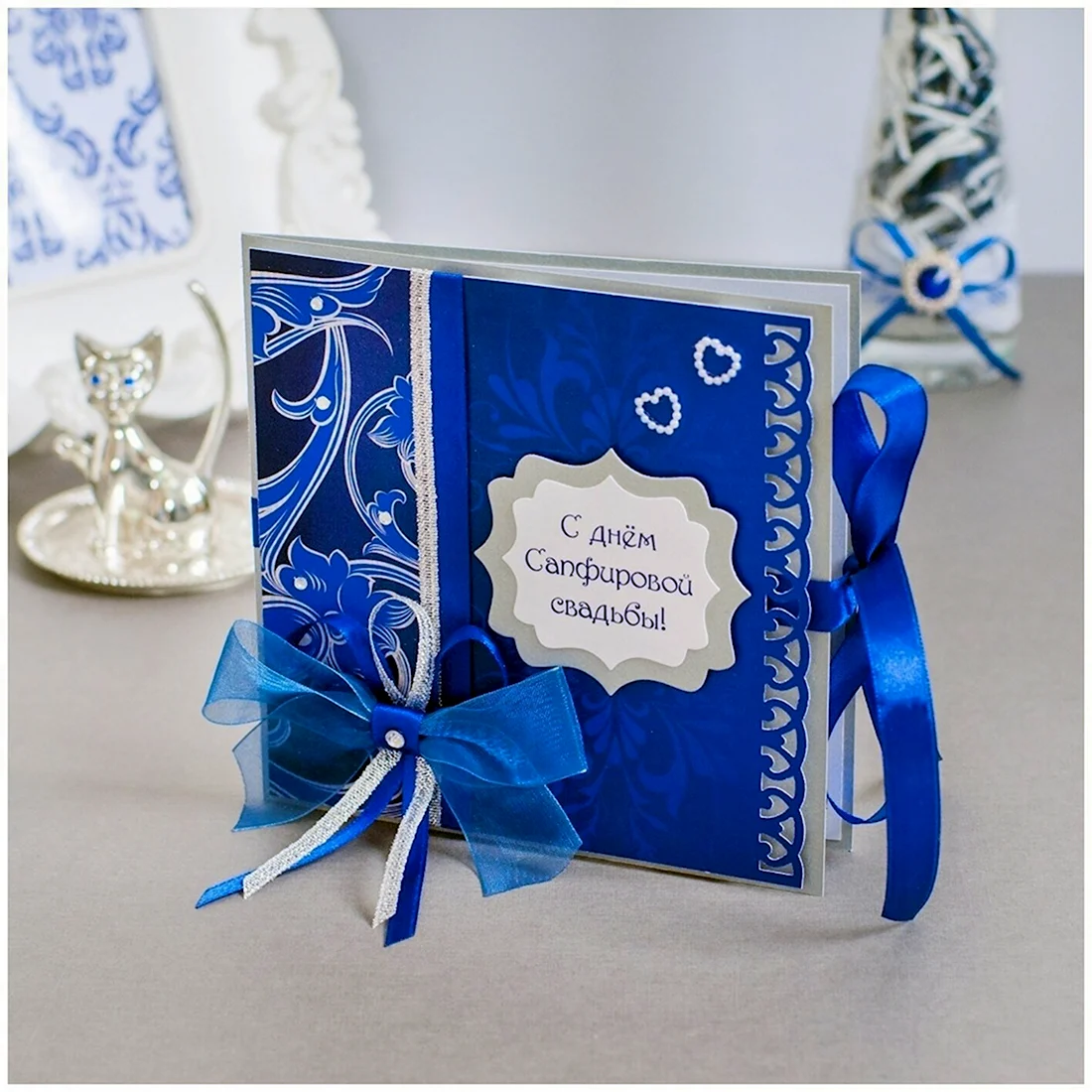 Эти открытки с сапфировой свадьбой просто поражают своей красотой и изысканностью! Как же здорово, что существуют такие утонченные и стильные варианты для поздравлений с таким важным событием. Уверен, каждая из них сможет стать настоящим символом любви и верности, которые так ценны в современном мире.