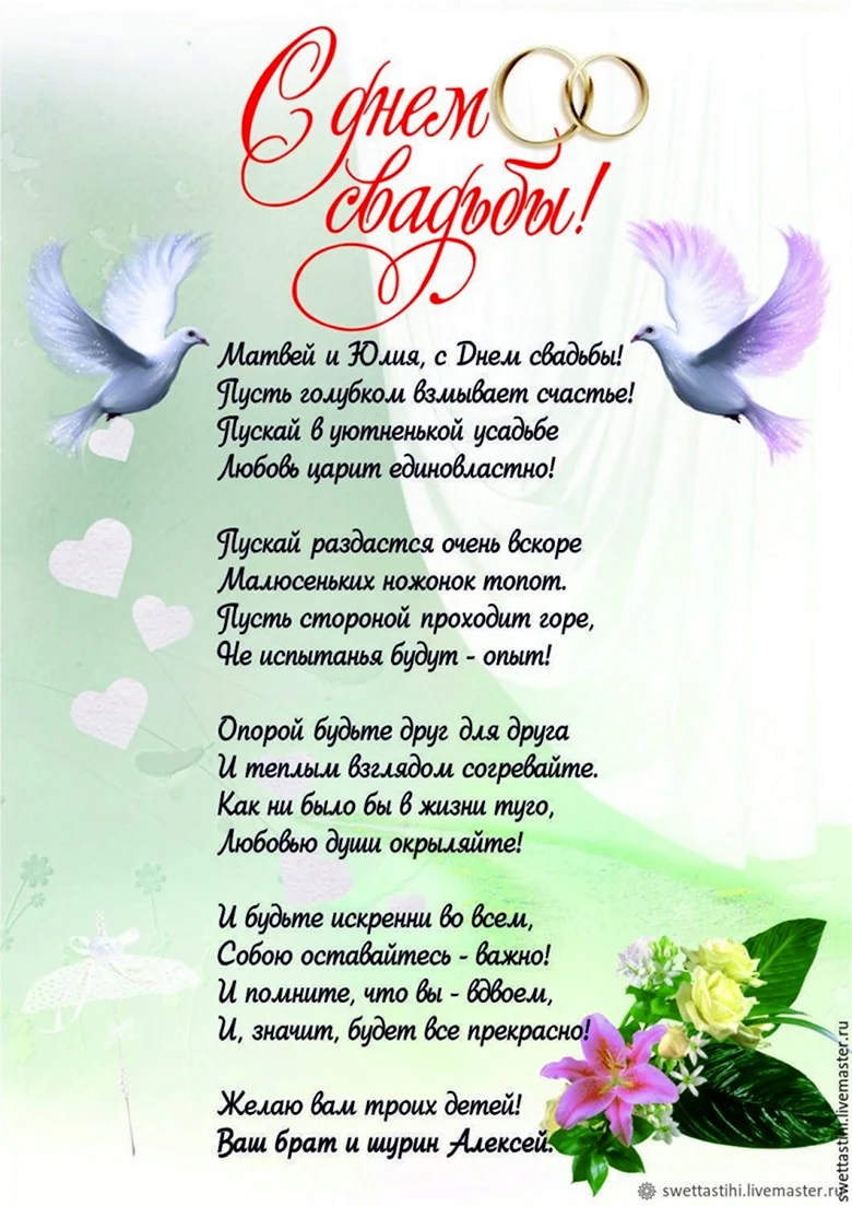 Ну вот, племяшка, ты официально стал частью клуба семейных! Желаю, чтобы ваши дни были полны смеха, а ночи — романтики и сладких снов!