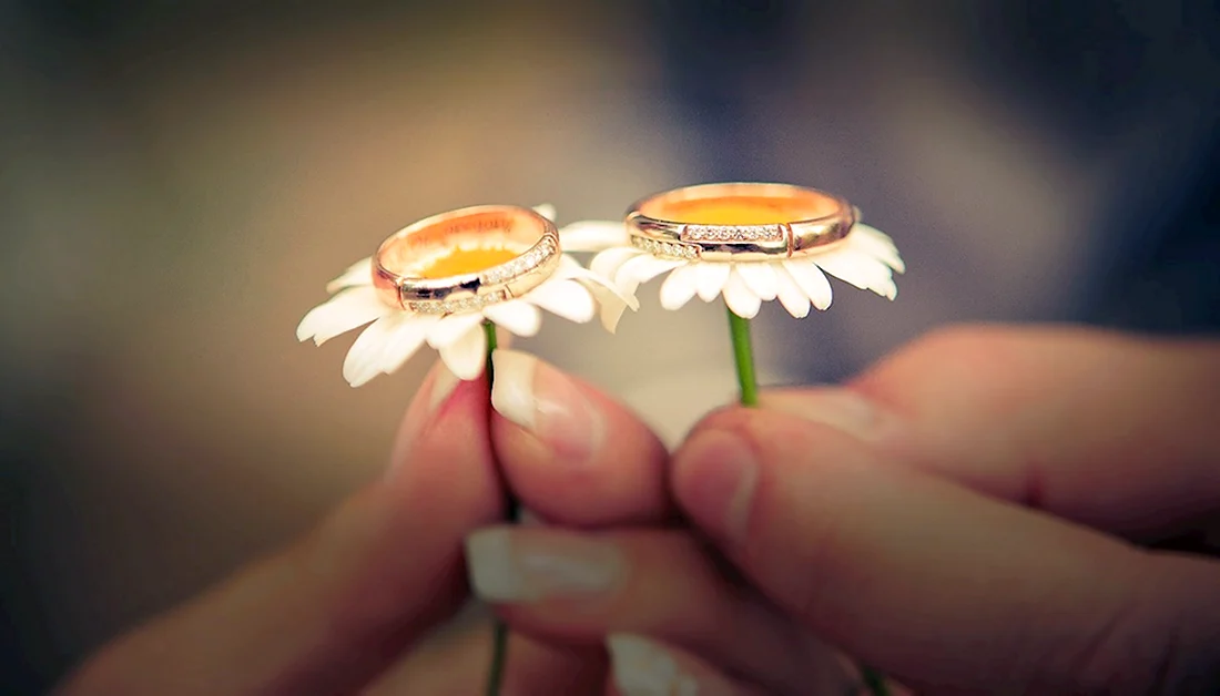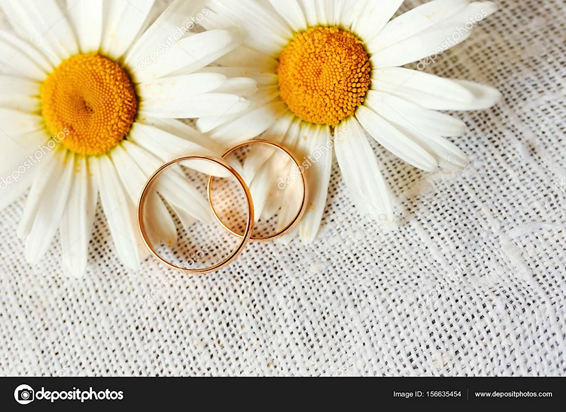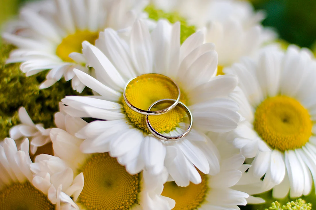 Ромашки и обручальные кольца.