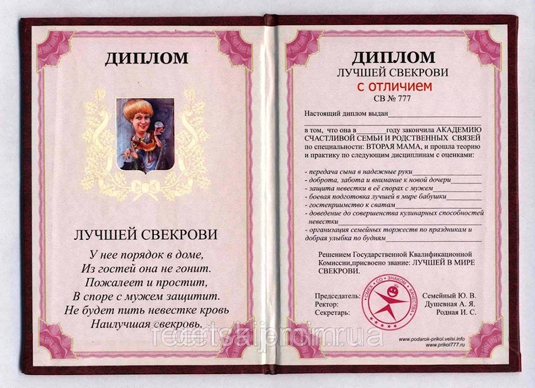 Диплом свекрови от невестки.