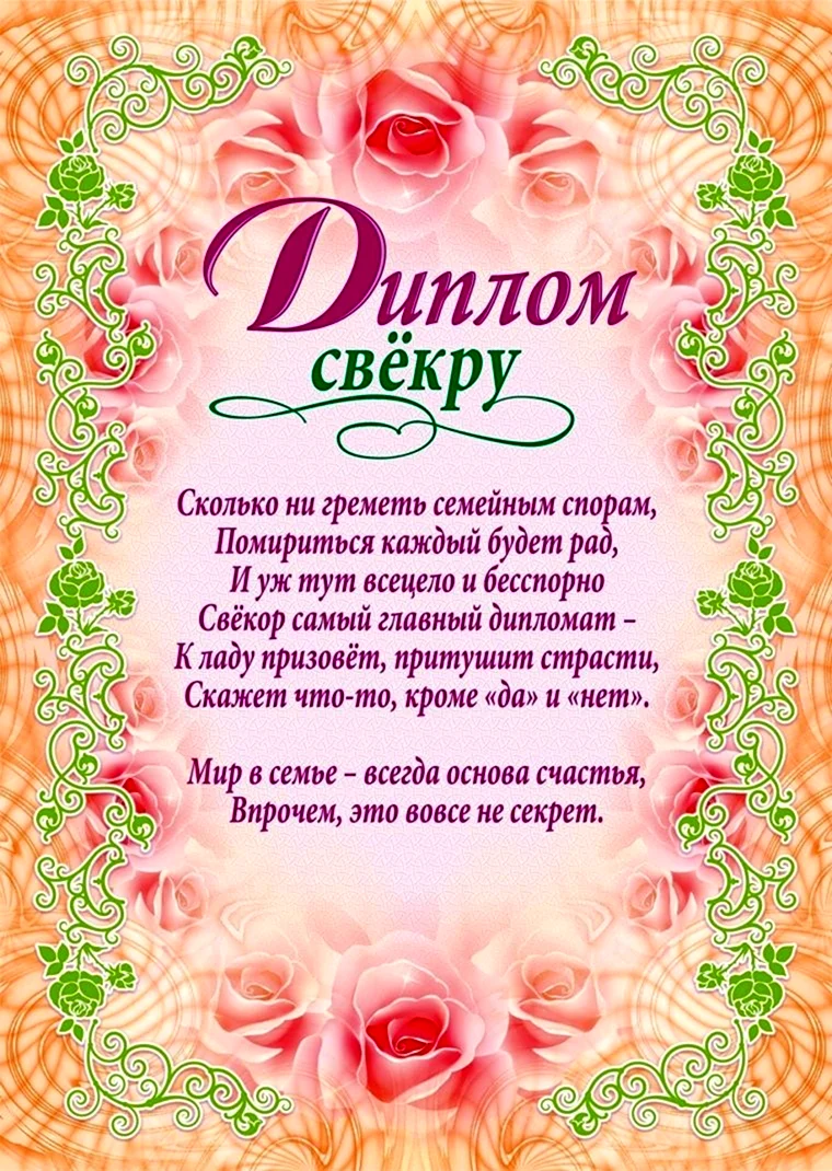 Диплом свекру.
