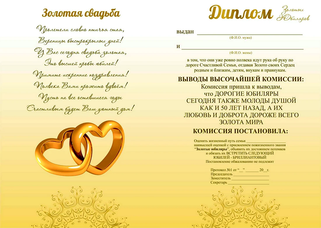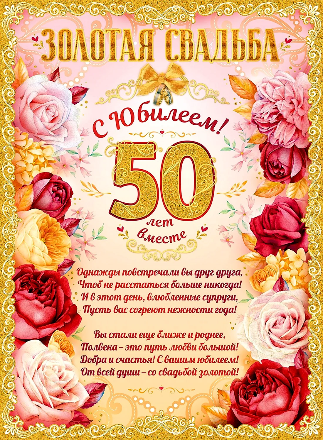 Открытки с золотой свадьбой родителям от детей и внуков.