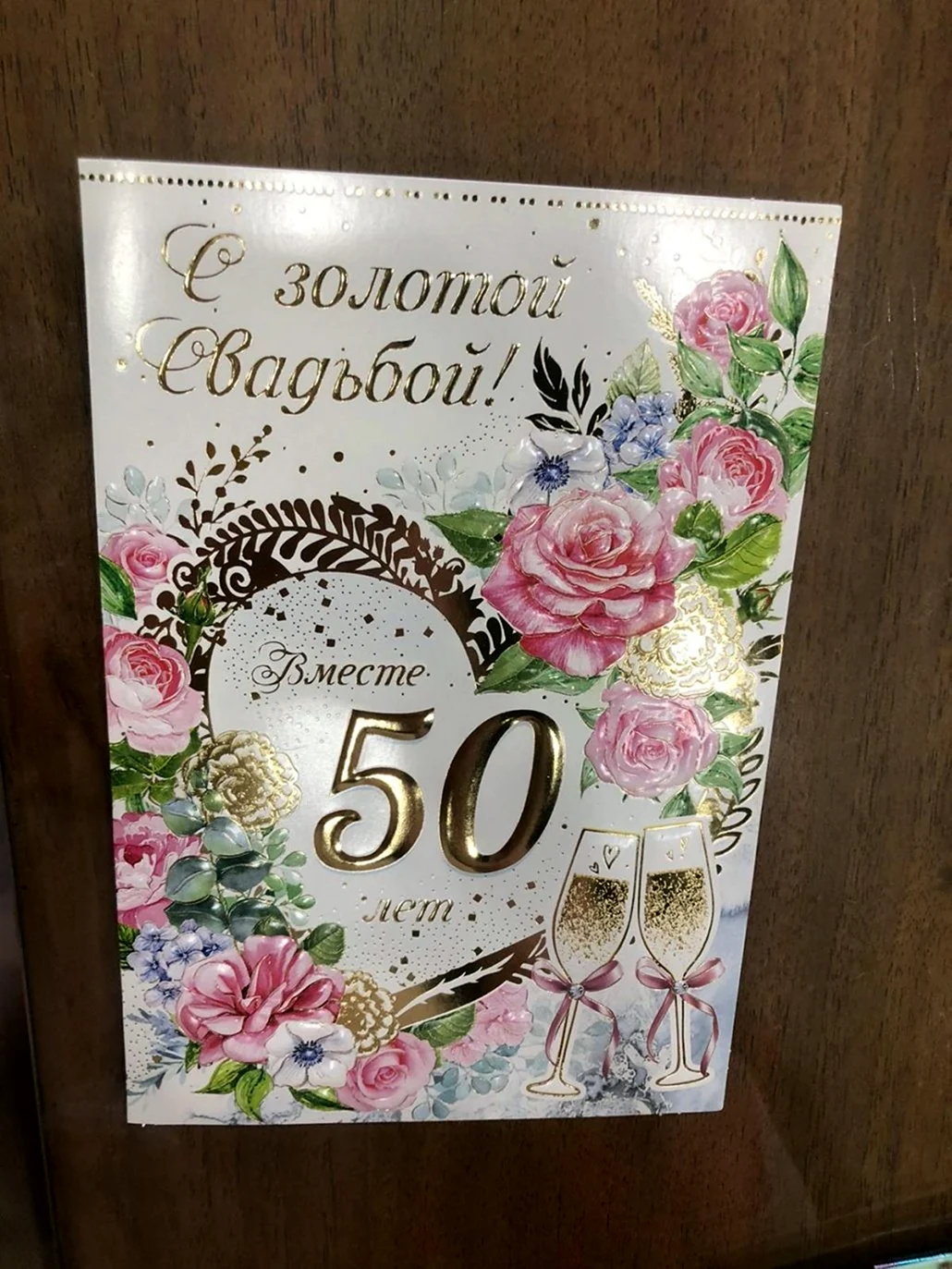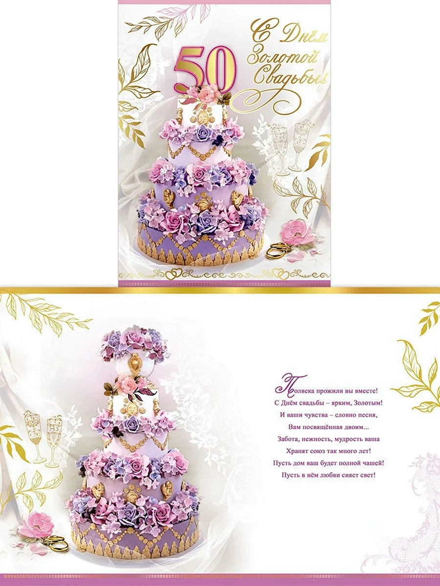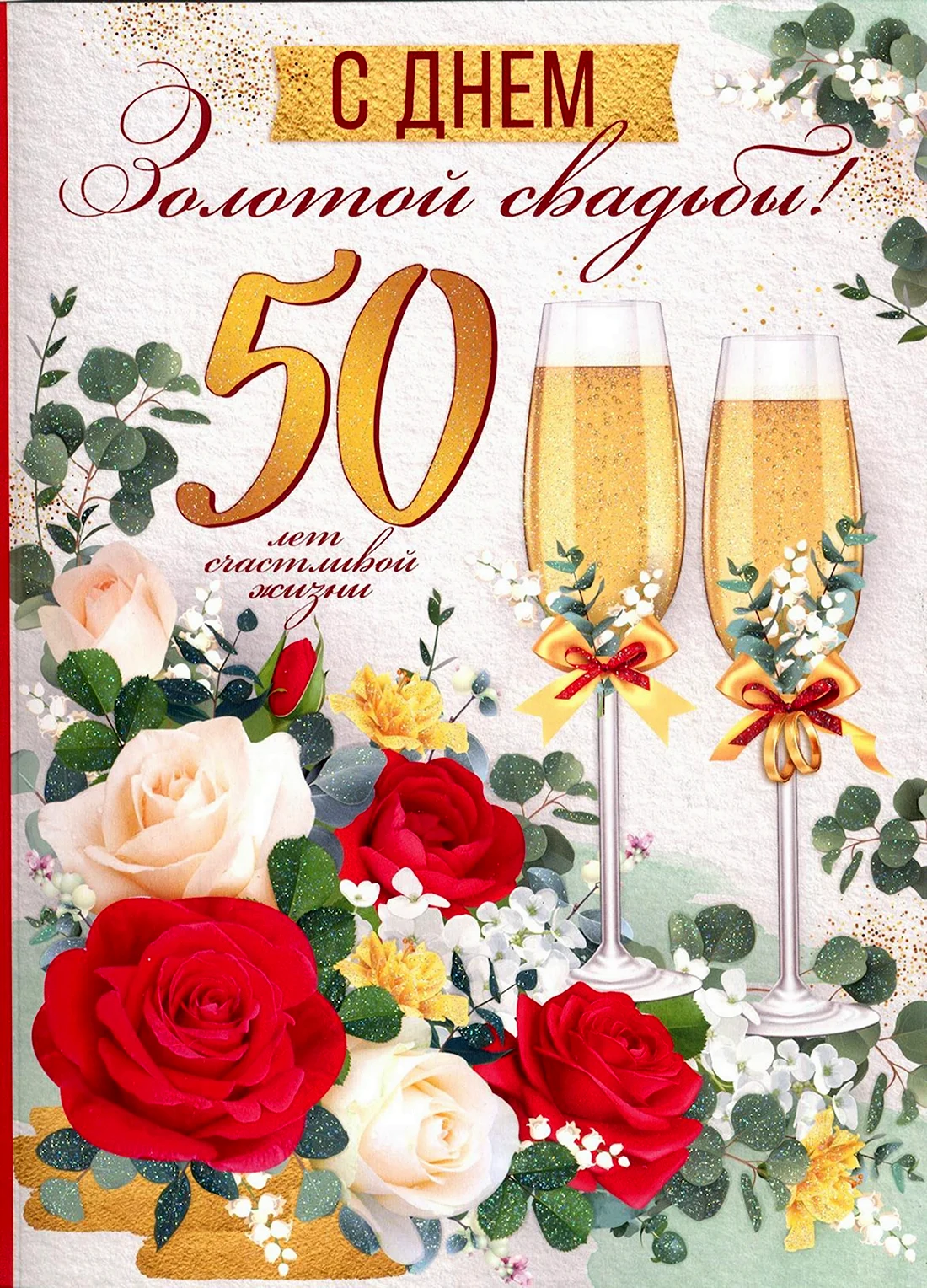 Поздравление с 50-летием свадьбы в виде красочных открыток.