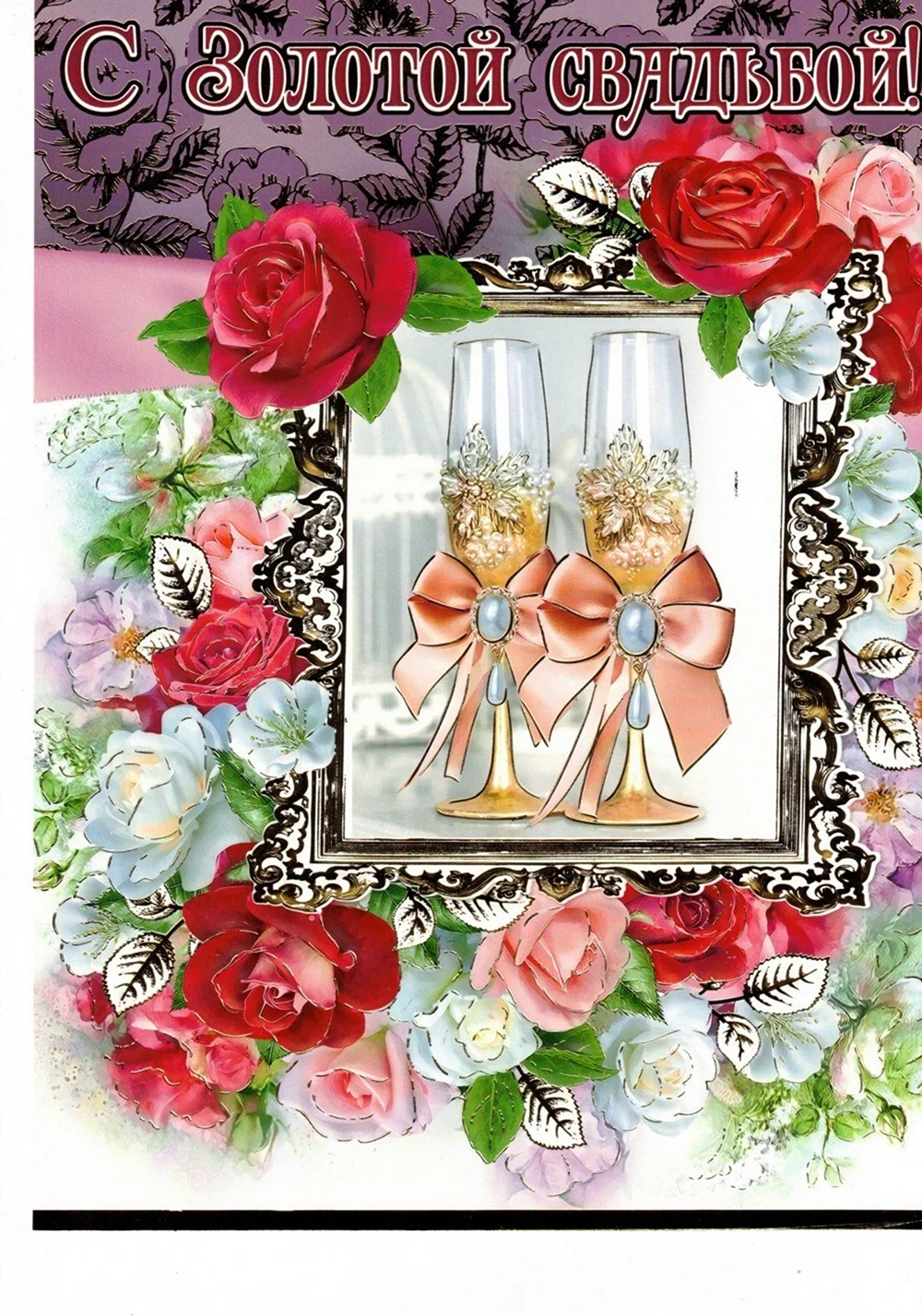 Открытки с золотой свадьбой родителям от детей и внуков.