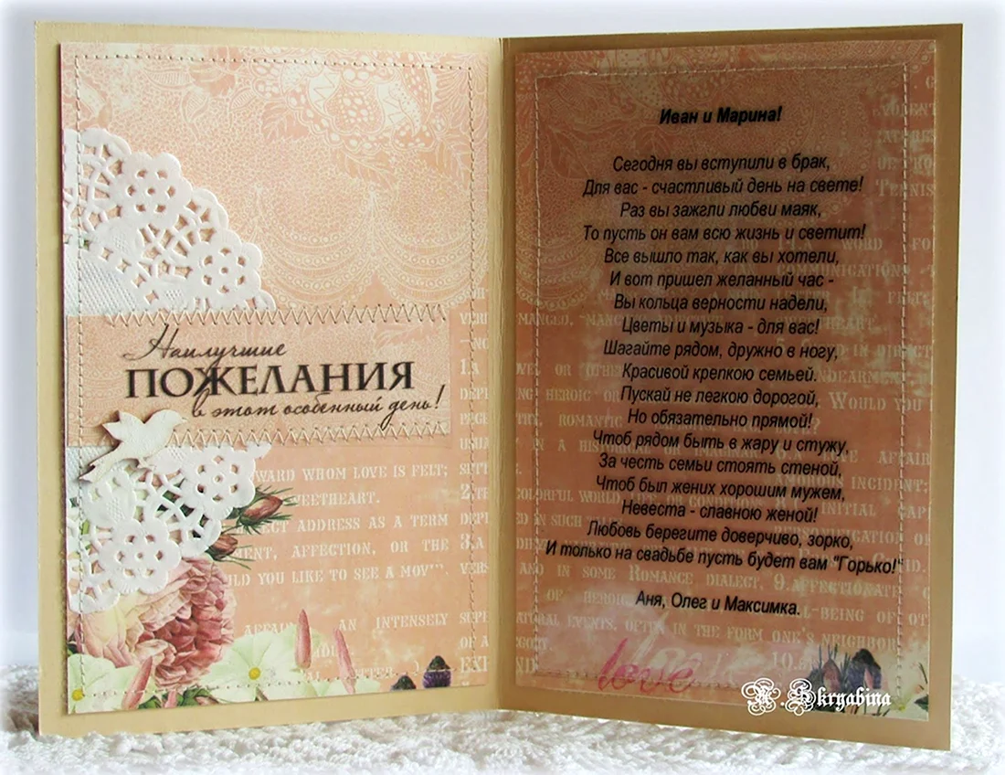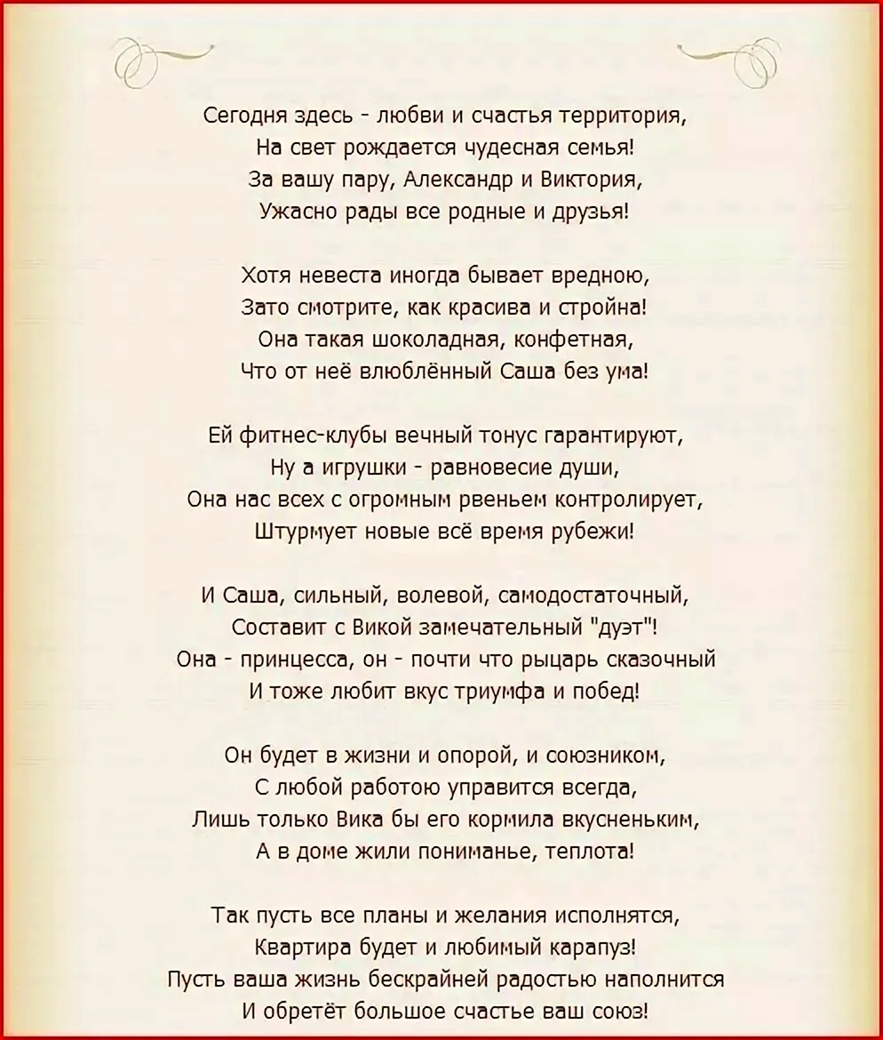 Поздравительные стихи молодоженов на свадьбе от бабушки и Деда.