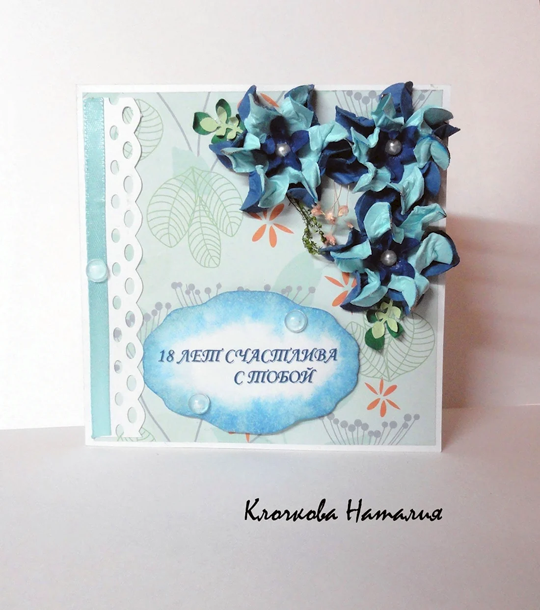 Бирюзовая открытка с днем рождения.