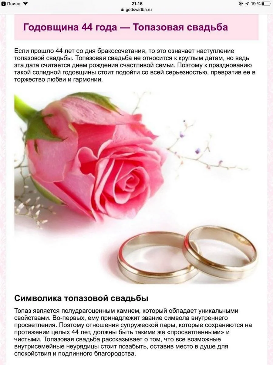 Поздравляем с топазовой свадьбой, днем, который символизирует 44 года счастливой совместной жизни!
