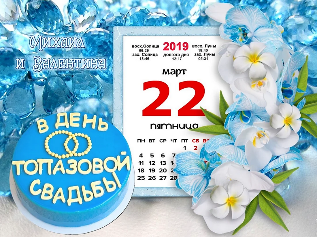 Поздравляю с юбилейной гранью любви! Пусть топазы вашей свадьбы сверкают ярче, чем блики от шампанского в бокалах!