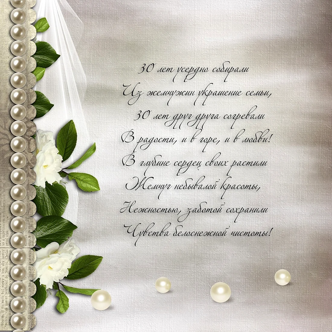 На этой странице вы найдете подборку картинок и поздравления с днем жемчужной свадьбы, которые станут прекрасным подарком для ваших близких и родных.