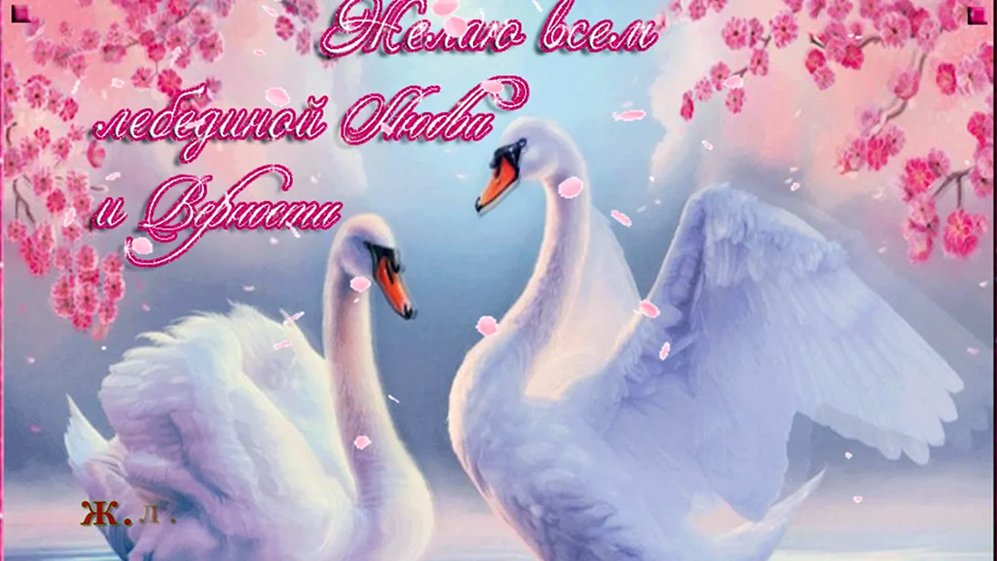 Открытка с лебедями на свадьбу.