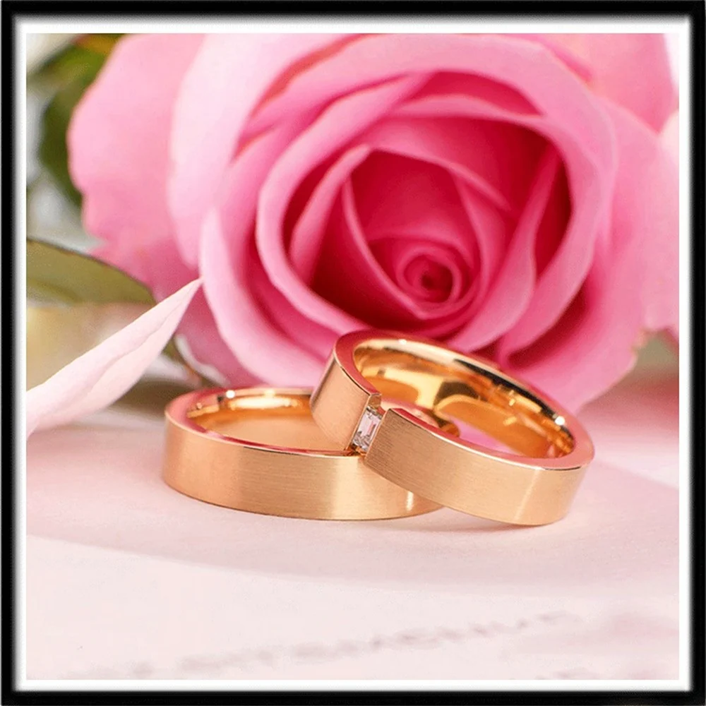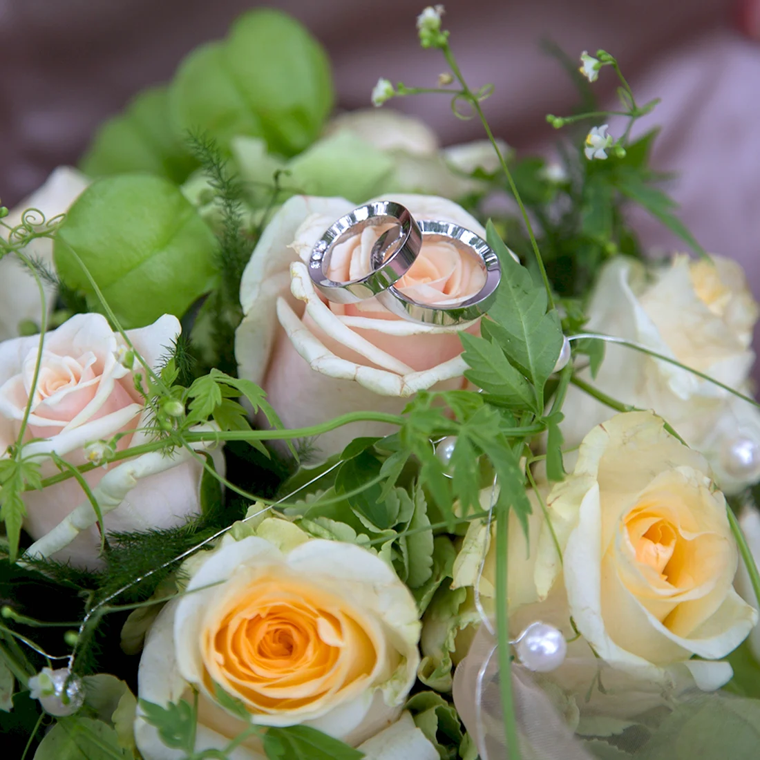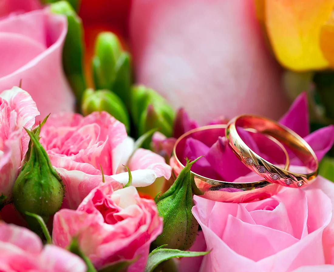 Обручальные кольца на фоне роз.