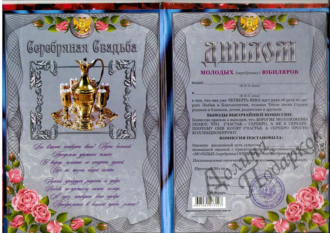 Диплом с серебряной свадьбой.