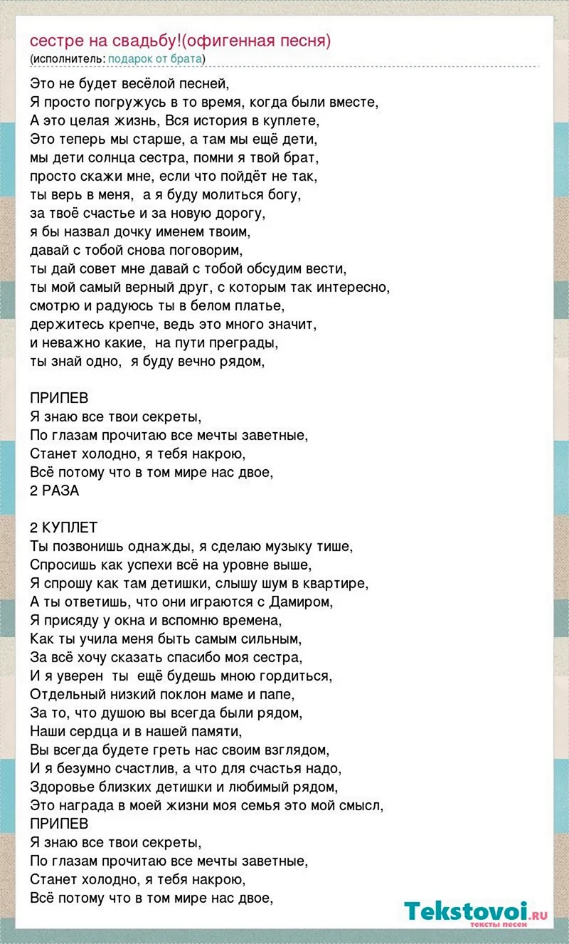 Поздравление сестре от младшего брата на свадьбу.