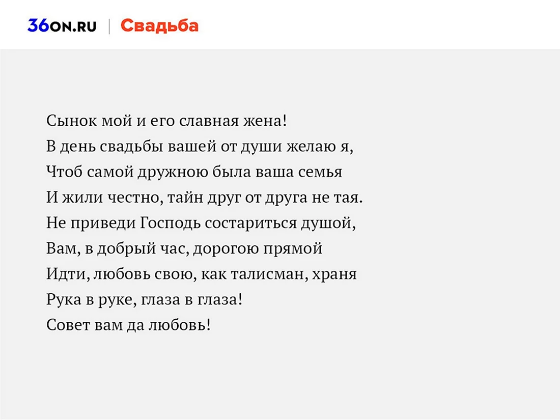 Поздравительные стихи молодоженов на свадьбе от бабушки и Деда.
