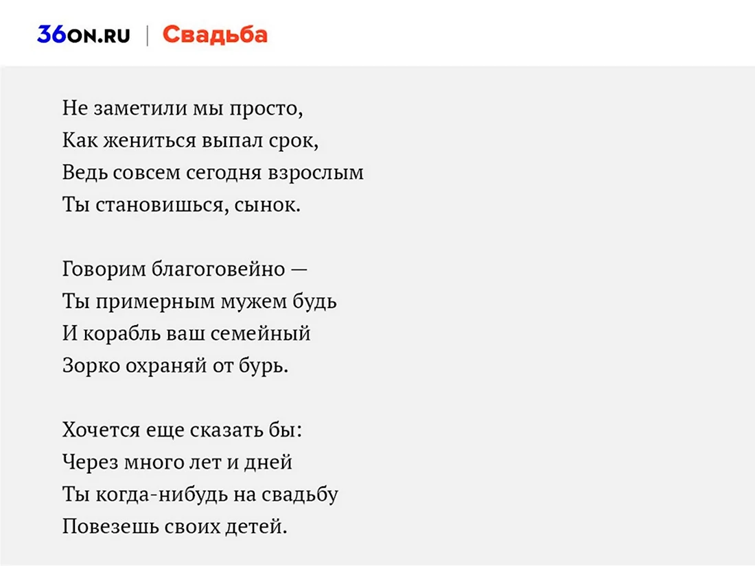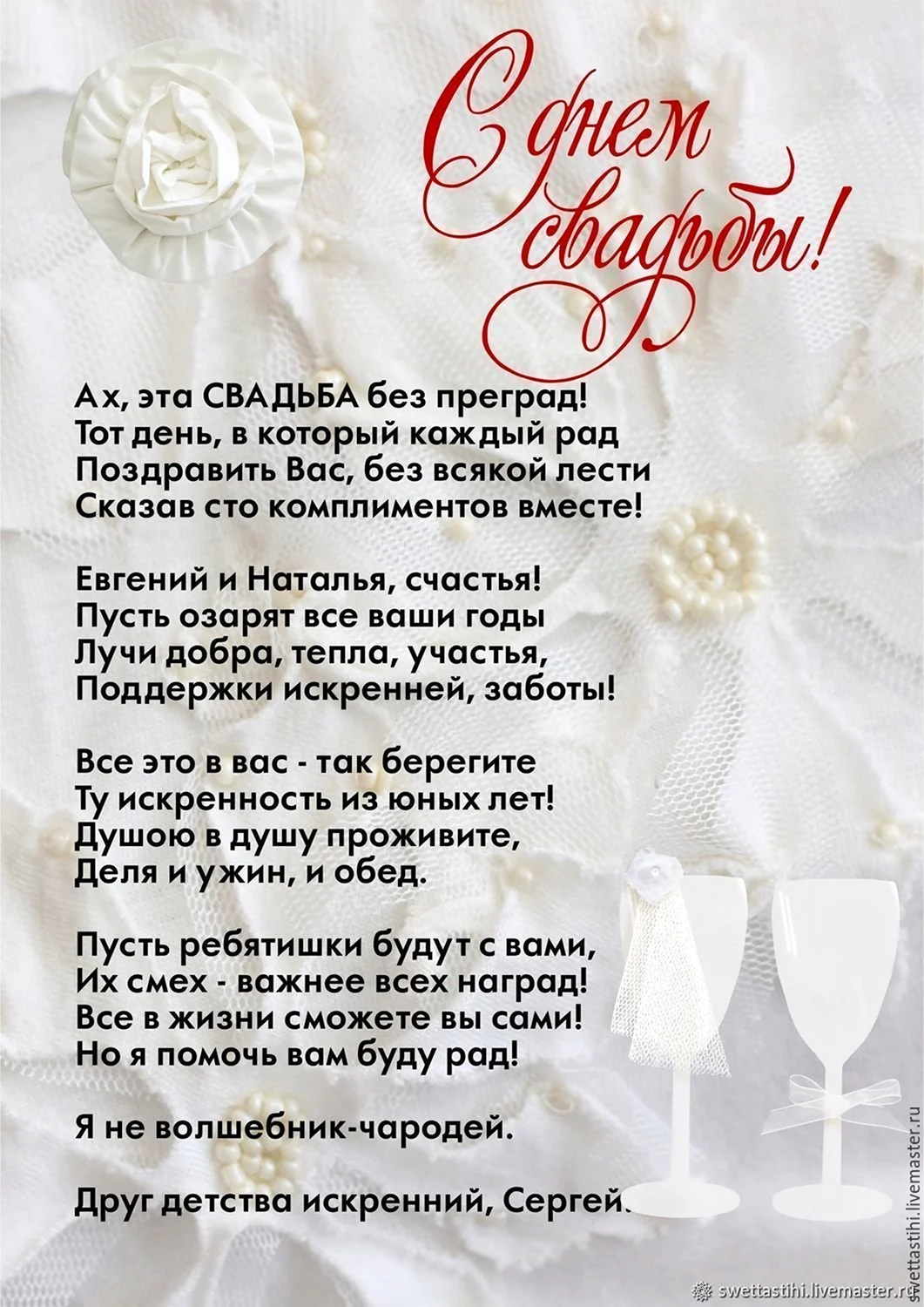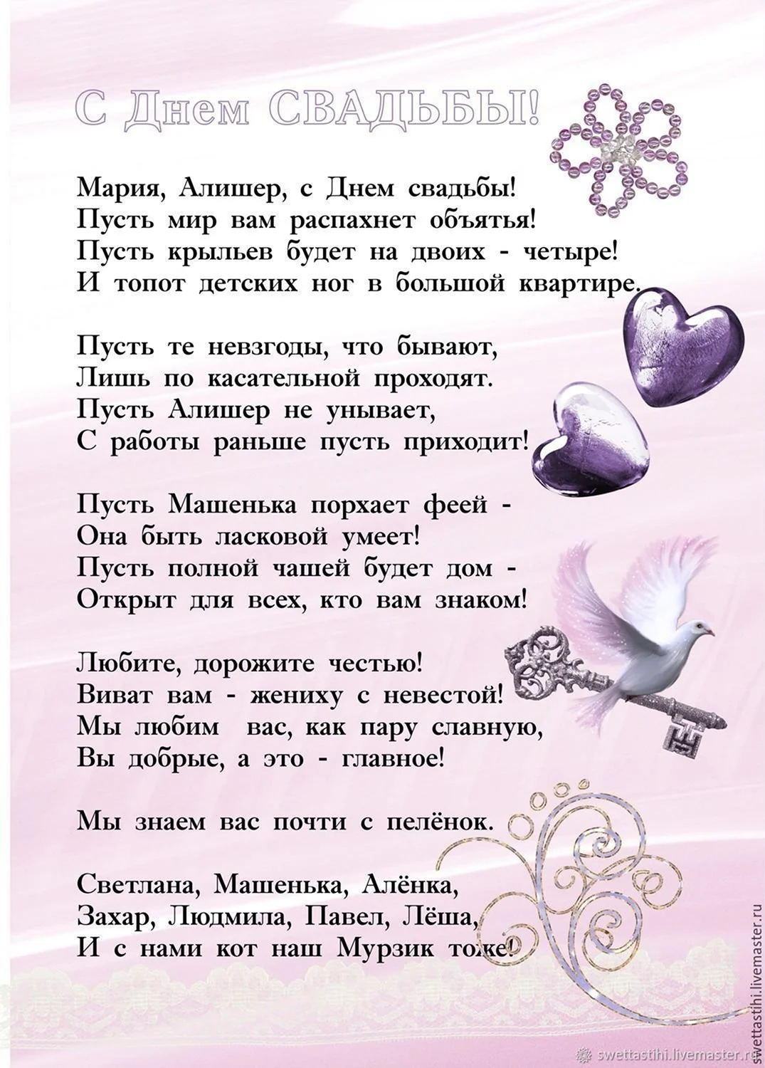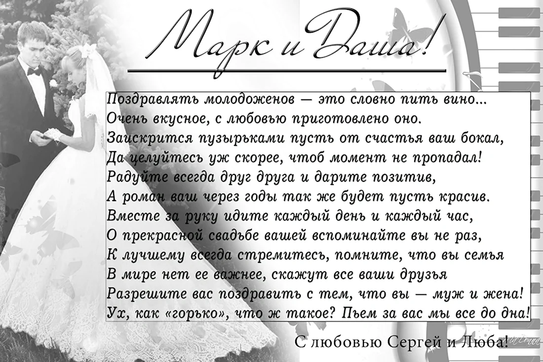 Поздравительные стихи молодоженов на свадьбе от бабушки и Деда.